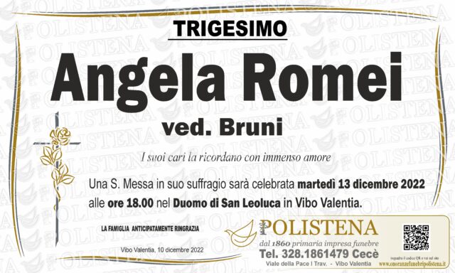 Condividi su NomeAngelaCognomeRomeiData di morte13/11/2022Data funerale15/11/2022Tutti i manifesti correlatiNavigazione articoli« PrecedenteLina StirparoSuccessivo »Filomena Grazia Primavera