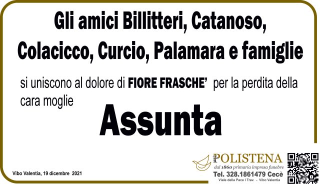 Condividi su NomeAssuntaCognomeSaragòData di morte19/12/2021Data funerale21/12/2021Tutti i manifesti correlatiNavigazione articoli« PrecedenteGiuseppina PiccoloSuccessivo »Natale Francesco Ramondino