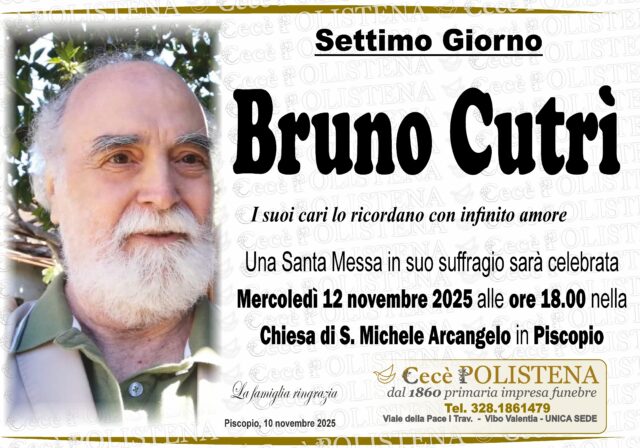 Condividi su NomeBrunoCognomeCutrìData di morte06/11/2025Data funerale08/11/2025Tutti i manifesti correlatiNavigazione articoli« PrecedenteCarmelo PerriSuccessivo »Carmelo Benedetti