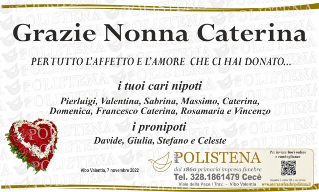 Condividi su NomeCaterinaCognomeValentinoData di morte06/11/2022Data funerale07/11/2022Tutti i manifesti correlatiNavigazione articoli« PrecedenteDomenico FerroSuccessivo »Marianna De Filippis