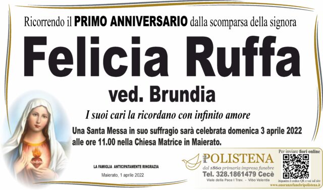 Condividi su NomeFeliciaCognomeRuffaTutti i manifesti correlatiNavigazione articoli« PrecedenteRaffaella ParisiSuccessivo »Angelo Sabatino