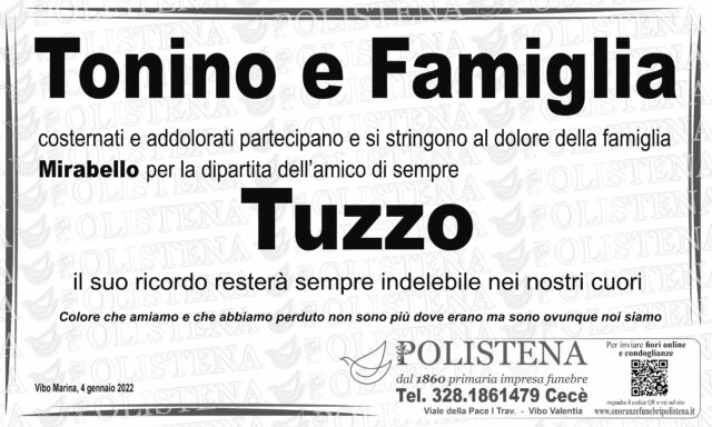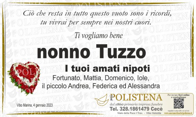 Condividi su NomeFortunatoCognomeMirabelloData di morte04/01/2023Data funerale05/01/2023Tutti i manifesti correlatiNavigazione articoli« PrecedenteMaria Giuseppina StuppiaSuccessivo »Josefa Muradas