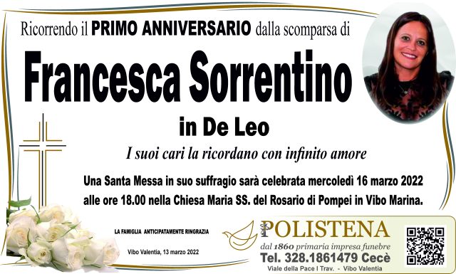 Condividi su NomefrancescaCognomeSorrentinoData funerale16/03/0003Tutti i manifesti correlatiNavigazione articoli« PrecedenteCaterina GrecoSuccessivo »Domenico La Gamba