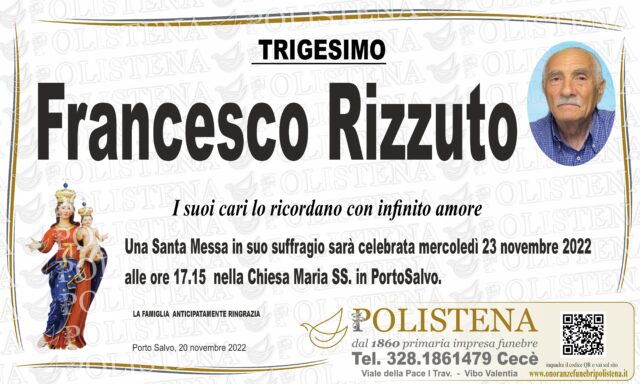 Condividi su Invia condoglianzeNomeFrancescoCognomeRizzutoData di morte23/10/2022Data funerale25/10/2022Invia condoglianzeTutti i manifesti correlatiNavigazione articoli« PrecedenteGennaro MancusoSuccessivo »Mimmo Febbraro