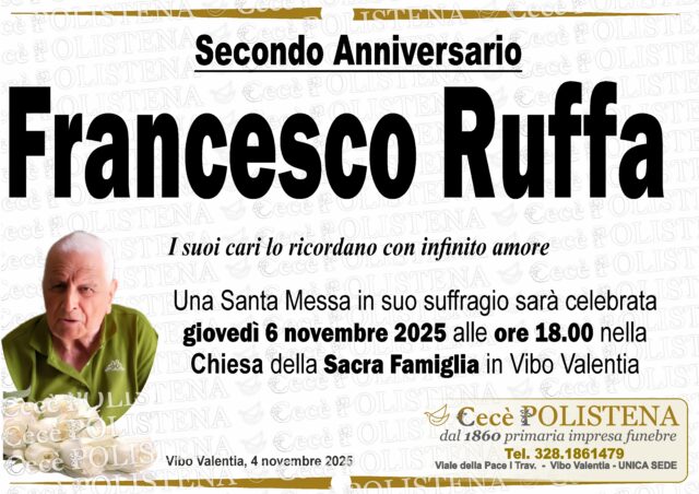 Condividi su Invia condoglianzeNomeFrancescoCognomeRuffaData di morte07/11/2023Data funerale08/11/2023Invia condoglianzeTutti i manifesti correlatiNavigazione articoli« PrecedenteLiliana PiromalliSuccessivo »Benito Librandi
