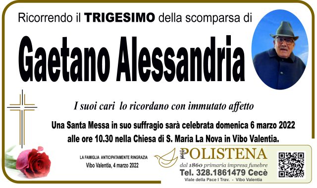 Condividi su NomeGaetanoCognomeAlessandriaData di morte06/02/2022Data funerale13/02/2022Tutti i manifesti correlatiNavigazione articoli« PrecedenteSalvatore QuinciSuccessivo »Vincenzo Mario Togo