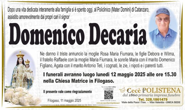 Condividi su Invia condoglianzeNomeGiovan BattistaCognomeDe CariaData di morte01/08/2025Data funerale04/08/2025Invia condoglianzeTutti i manifesti correlatiNavigazione articoli« PrecedenteFrancesco Antonio SorrentinoSuccessivo »Francesco Barone