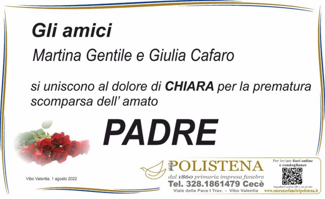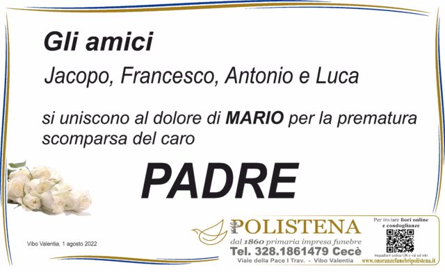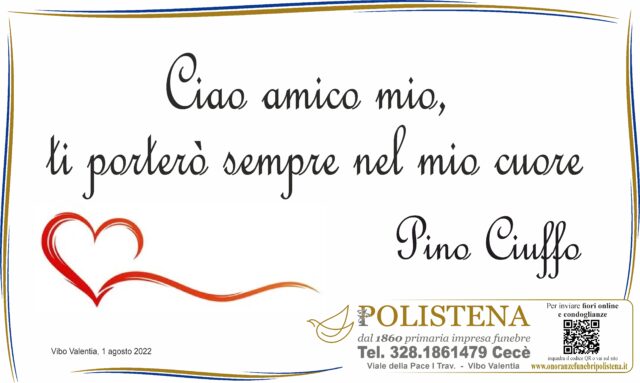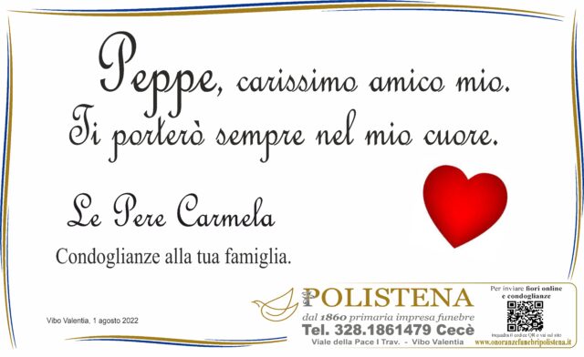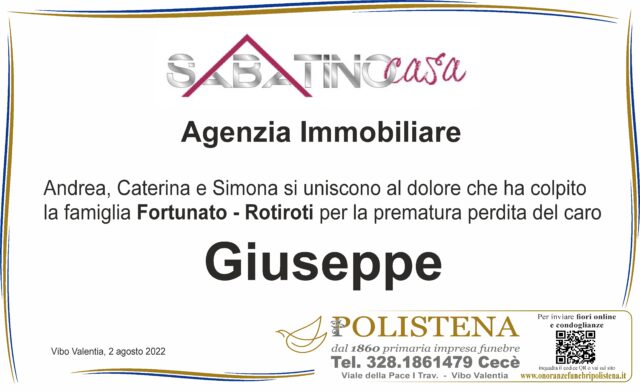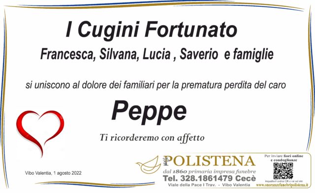 Condividi su Invia condoglianzeNomeGiuseppeCognomeFortunatoData di morte01/08/2022Data funerale02/08/2022Invia condoglianzeTutti i manifesti correlatiNavigazione articoli« PrecedenteConcetta ScolieriSuccessivo »Nini Rotolo