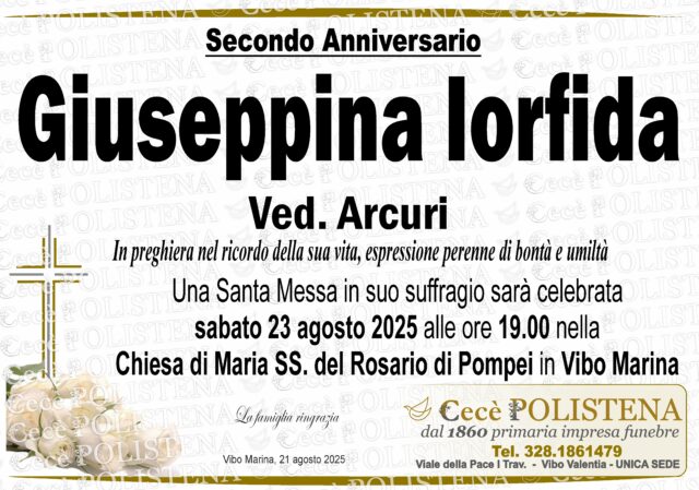Condividi su Invia condoglianzeNomeIns. GiuseppinaCognomeIorfidaData di morte23/08/2023Data funerale24/08/2023Invia condoglianzeTutti i manifesti correlatiNavigazione articoli« PrecedenteMaria TrentacapilliSuccessivo »Carlo Cavaliere