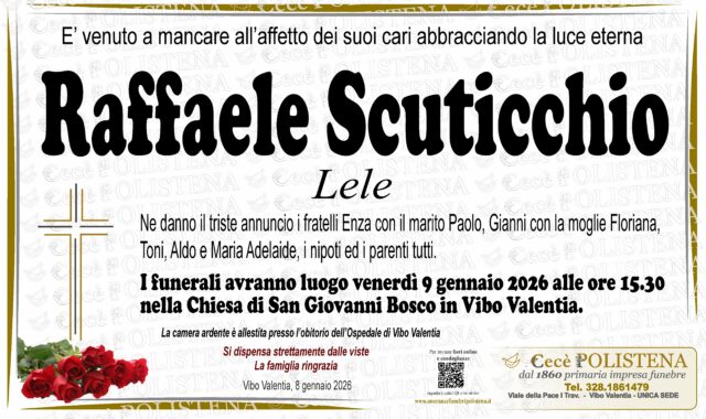 Condividi su Invia condoglianzeNomeLeleCognomeScuticchioData di morte07/01/2026Data funerale09/01/2026Invia condoglianzeNavigazione articoli« PrecedenteElvira FaccioloSuccessivo »Edoardo Sedda