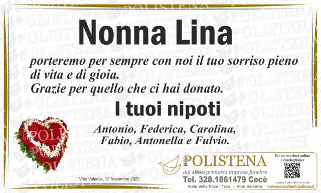 Condividi su Invia condoglianzeNomeLinaCognomeStirparoData di morte13/11/2022Data funerale14/11/2022Invia condoglianzeTutti i manifesti correlatiNavigazione articoli« PrecedenteFrancesco Antonio CuratoloSuccessivo »Angela Romei