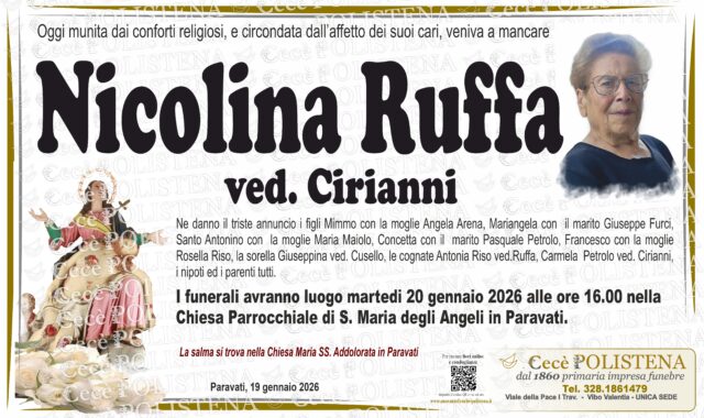 Condividi su Invia fiori Invia condoglianzeNomeNicolinaCognomeRuffaData funerale20/01/2026Invia fiori Invia condoglianzeNavigazione articoli« PrecedenteAnnunziata Lacquaniti