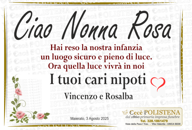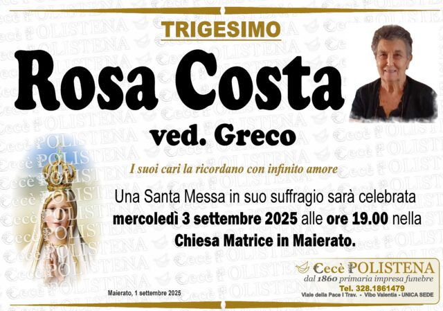 Condividi su Invia condoglianzeNomeRosaCognomeCostaData di morte03/08/2025Data funerale05/08/2025Luogo di sepolturaCimitero di MaieratoInvia condoglianzeTutti i manifesti correlatiNavigazione articoli« PrecedenteFrancesco BarrecaSuccessivo »Teresa Blandino
