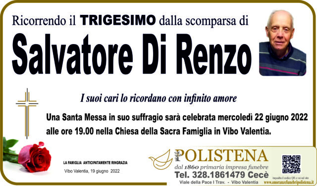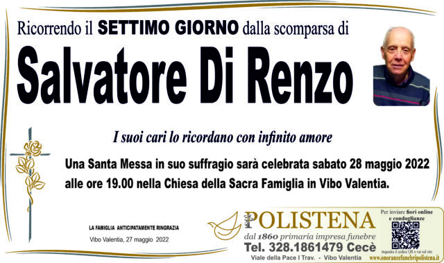 Condividi su Invia condoglianzeNomeSalvatoreCognomeDi RenzoData di morte22/05/2022Data funerale24/05/2022Invia condoglianzeTutti i manifesti correlatiNavigazione articoli« PrecedenteFilippo FrancoSuccessivo »Rosaria Lo Bianco