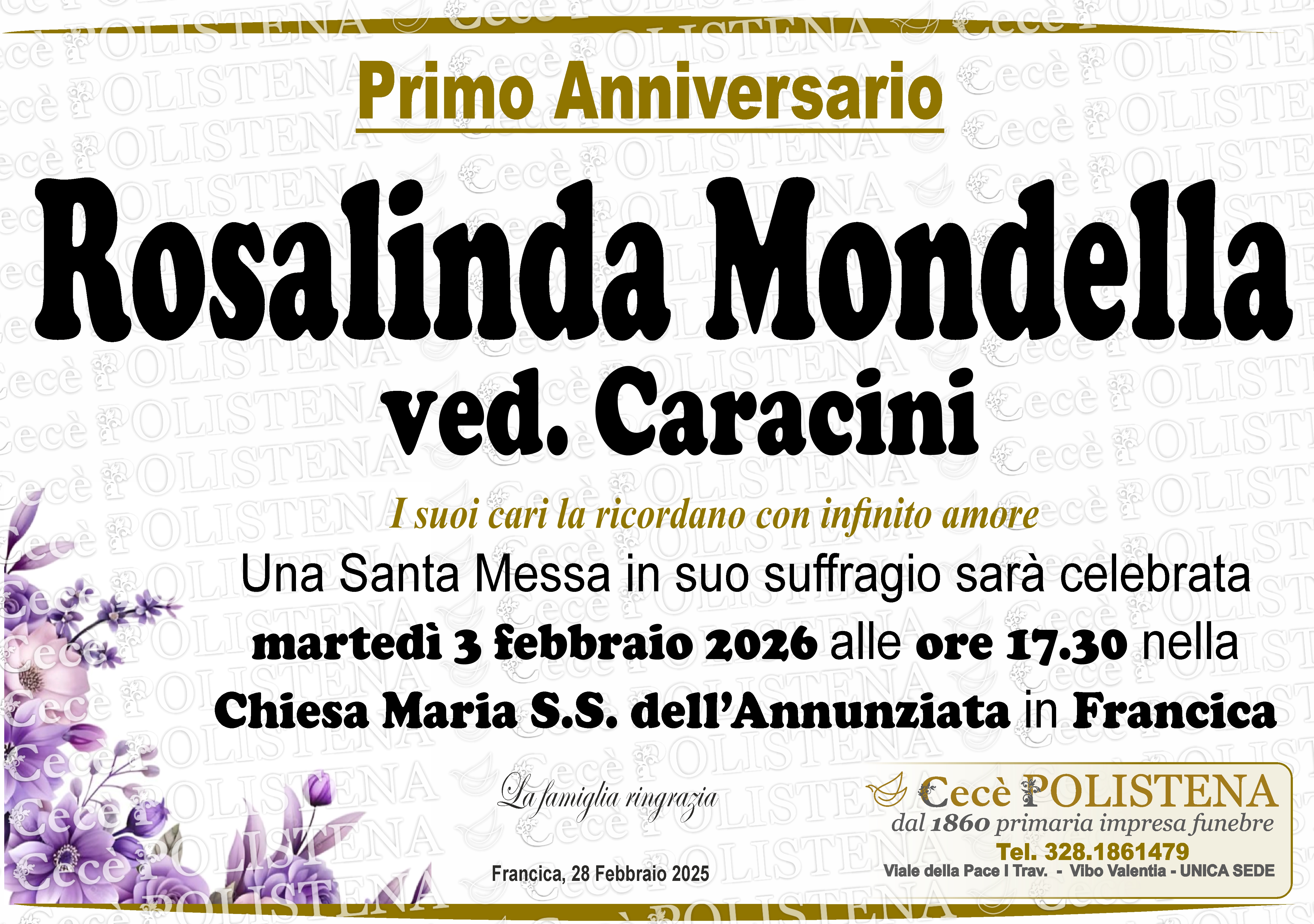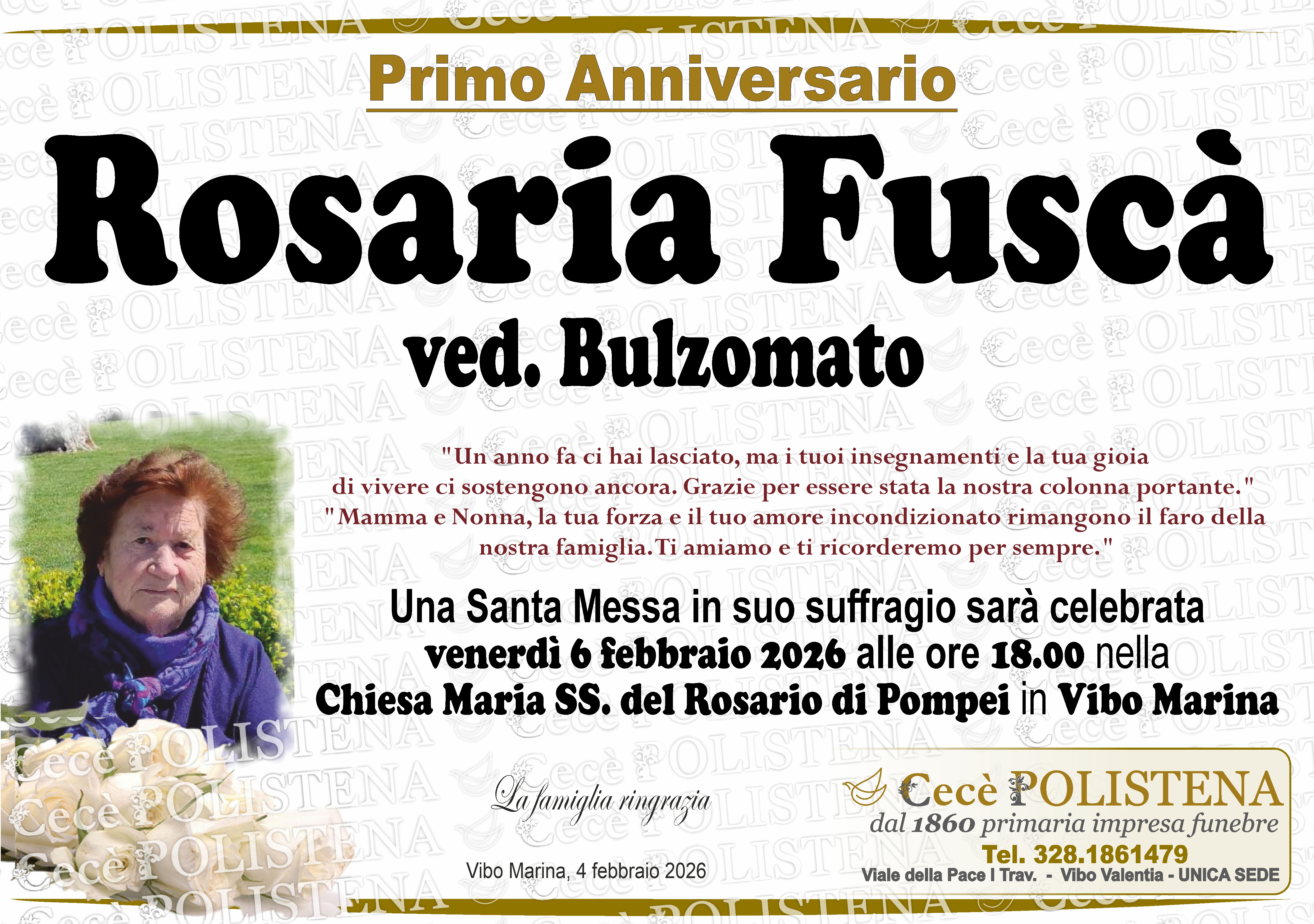 Vai ai NecrologiAnniversario - Katia Greco Condividi su Visualizza necrologioAnniversario - Rosaria Fuscà Condividi su Invia condoglianze Visualizza necrologioAnniversario - Rosolinda Mondella Condividi su Invia condoglianze Visualizza necrologioTrigesimo - Lele Scuticchio Condividi su Invia condoglianze Visualizza necrologioTrigesimo - Anna Ruga Condividi su Invia condoglianze Visualizza necrologioTrigesimo - Edoardo Sedda Condividi su Invia fiori Invia condoglianze Visualizza necrologioTrigesimo - Elvira Facciolo Condividi su Invia condoglianze Visualizza necrologioAnniversario - Elena Pirruccio Condividi su Invia condoglianze Visualizza necrologioTrigesimo - Annunziata Lo Bianco Condividi su Invia condoglianze Visualizza necrologioAnniversario - Elisabetta Librandi Condividi su Invia condoglianze Visualizza necrologio7° giorno - Annunziata Lacquaniti Condividi su Invia condoglianze Visualizza necrologioAnniversario - Mazzitelli Rosa Condividi su Invia condoglianze Visualizza necrologioAnniversario - Rosa Baldo Condividi su Visualizza necrologioAnniversario - Giuseppe Emilio Cirillo Condividi su Invia condoglianze Visualizza necrologioAnniversario - Matteo Renato Cacciola Condividi su Visualizza necrologioAnniversario - Gaetano Leone Condividi su Invia condoglianze Visualizza necrologioAnniversario - Rosario Russo Condividi su Invia condoglianze Visualizza necrologioAnniversario - Dott. Raffaele Pagano Condividi su Visualizza necrologioTrigesimo - Prof.ssa Elisabetta Cortese Condividi su Invia condoglianze Visualizza necrologioAnniversario - Giuseppe Moscato Condividi su Invia condoglianze Visualizza necrologioTrigesimo - Teresa Dalmetti Condividi su Invia condoglianze Visualizza necrologio7° giorno - Giuseppe Piazzolla Condividi su Visualizza necrologioAnniversario - Felice Antonio Ferrara Condividi su Visualizza necrologioAnniversario - Francesco Antonio Catania Condividi su Invia condoglianze Visualizza necrologioAnniversario - Rosa Rubino Condividi su Invia condoglianze Visualizza necrologioAnniversario - Rosa D’Amico Condividi su Invia condoglianze Visualizza necrologioTrigesimo - Antonietta Lo Preiato Condividi su Invia condoglianze Visualizza necrologio3° giorno - Annunziata Lo Bianco Condividi su Invia condoglianze Visualizza necrologioTrigesimo - Giuseppe Russo Condividi su Invia condoglianze Visualizza necrologio7° giorno - Totò Gradia Condividi su Invia condoglianze Visualizza necrologioAnniversario - Rita Franzè Condividi su Visualizza necrologioTrigesimo - Carmelo Perri Condividi su Invia condoglianze Visualizza necrologio7° giorno - Giovanna Piana Condividi su Invia condoglianze Visualizza necrologioTrigesimo - Maria Felicia Nicolina Scalamandrè Condividi su Invia condoglianze Visualizza necrologioAnniversario - Salvatore Antonio Pagnotta Condividi su Invia condoglianze Visualizza necrologioAnniversario - Clemente Griffo Condividi su Invia condoglianze Visualizza necrologioTrigesimo - Carmelo Benedetti Condividi su Invia condoglianze Visualizza necrologioAnniversario - Olga Romano Condividi su Visualizza necrologioAnniversario - Luigi Vasapollo Condividi su Invia condoglianze Visualizza necrologioAnniversario - Francesco Iellimo Condividi su Visualizza necrologioAnniversario - Elisabetta Giuliani Condividi su Visualizza necrologioTrigesimo - Angela Ferri Condividi su Invia condoglianze Visualizza necrologioAnniversario - Alessandro Porco Condividi su Visualizza necrologioTrigesimo - Giuseppina de Giorgio Condividi su Invia condoglianze Visualizza necrologioTrigesimo - Pasqualino Parisi Condividi su Visualizza necrologioTrigesimo - Filomena La Rocca Condividi su Invia condoglianze Visualizza necrologioAnniversario - Giuseppina Cirillo Condividi su Invia condoglianze Visualizza necrologioTrigesimo - Domenico Micelli Condividi su Invia condoglianze Visualizza necrologioTrigesimo - Bruno Durante Condividi su Visualizza necrologioTrigesimo - Rag. Nicola Gaglione Condividi su Invia condoglianze Visualizza necrologioNavigazione articoli1 2 … 19 Successivi